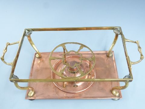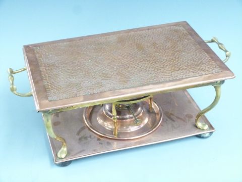 Copper and brass Arts & Crafts food warmer with registered design number 412398, L43cm