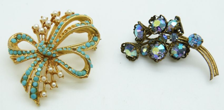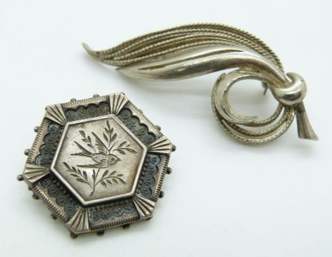 A collection of brooches including a jet example with ivory detail, silver, Siam silver and Thai example marked Thye Yiak Bangkok together with a Siam silver bracelet, Victorian ring etc