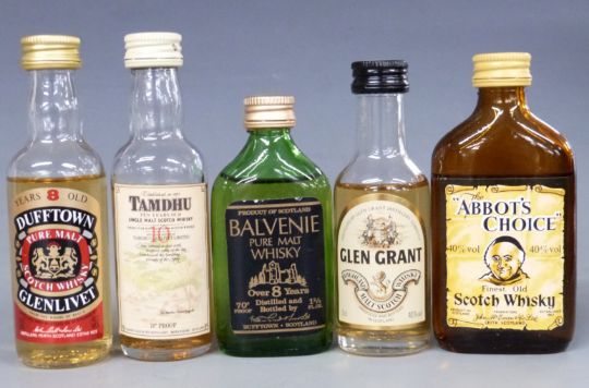Approximately 52 whisky miniatures including Chivas Regal blended, Crawfords Special Reserve, Passport and Catto's Rare Old Scottish Highland whisky etc.
