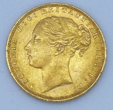 Victoria 1874 young head gold full sovereign, cased with certificate