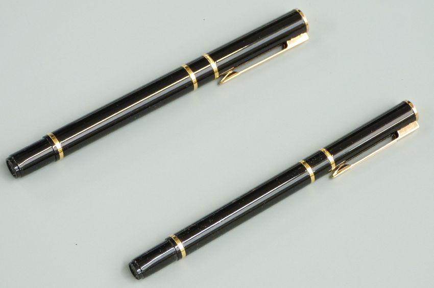 Waterman pen set comprising fountain and ballpoint pens, both with black bodies and gold plated fittings, in original case with paperwork and cartridges