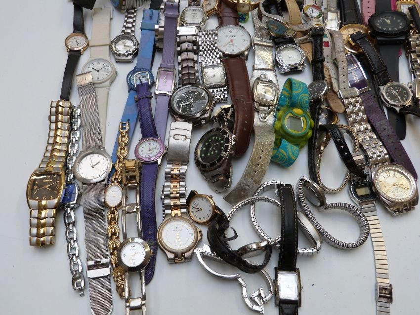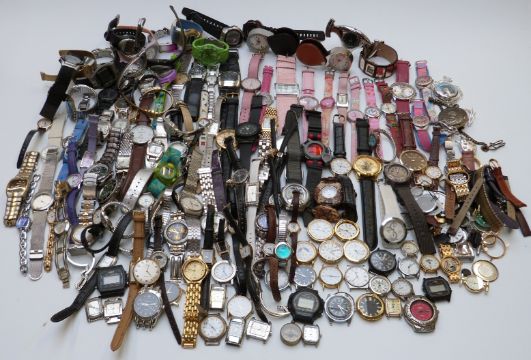 Over 100 various ladies and gentleman's wristwatchs including Casio Baby-G, Alarm Chronograph, Ingersoll, Gucci etc