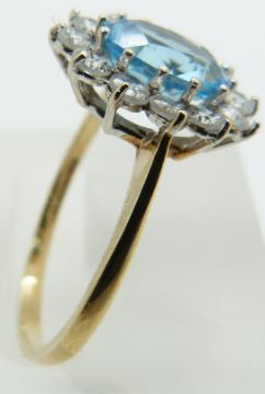 A 9ct gold ring set with a topaz and cubic zirconia, 2g, size N