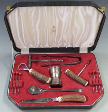 Cased Viners cocktail or barman's set including measure, bottle opener, corkscrew, cocktail sticks etc