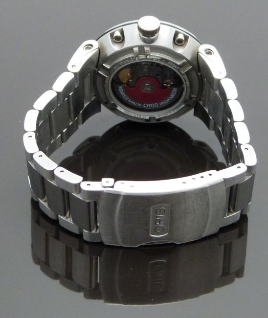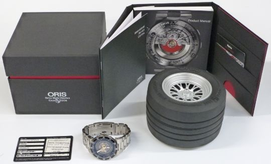 Oris Williams F1 Team Skeleton Date gentleman’s automatic wristwatch ref. 01 733 7613 4114-07 8 24 75 with luminous hands, black bezel, exhibition case back, stainless steel case and signed 26 jewel movement, on stainless steel bracelet, case diameter 42mm, serial number 29-06288, in original wheel case, with outer box, guarantee card, paperwork and purchase receipt.