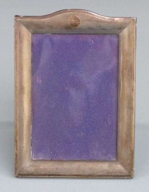 George V hallmarked silver photograph frame with engine turned decoration, to suit 6x4 inch photo, Birmingham 1917 maker Henry Matthews