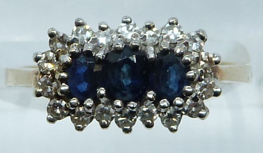 A 9ct gold ring set with sapphires and diamonds, 2.3g, size K