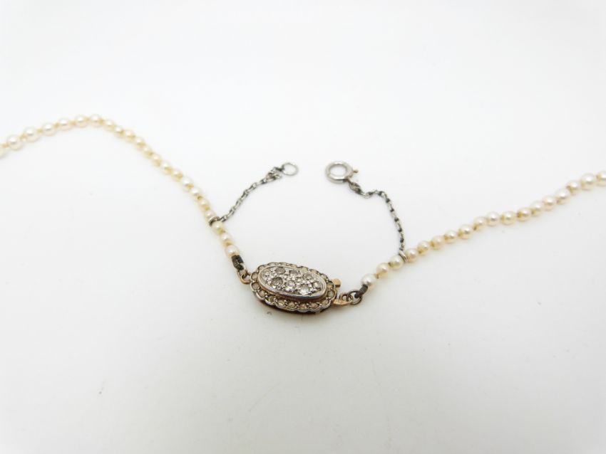 A single strand of natural pearls with a diamond clasp with AnchorCert certificate