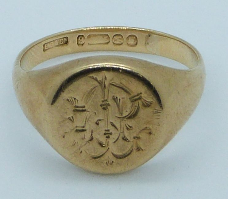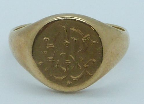 A 9ct gold signet ring, London 1947, 6.9g, size O