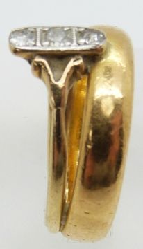 A 22ct gold wedding band attached to an 18ct gold wedding ring set with diamonds, 5.5g, size E