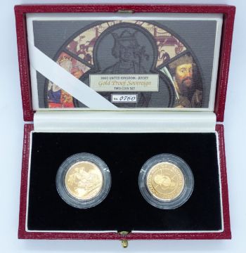 Elizabeth II 2000 sovereign pair set comprising UK and Jersey proof gold full sovereigns, cased with certificate no 0760