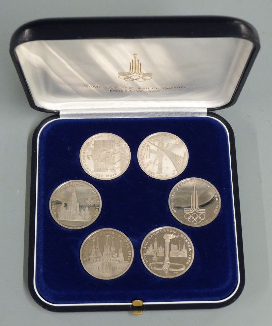 Games of the XXII Olympiad Moscow 1980 coin set comprising six silver coins in presentation case together a set of Queen's Silver Jubilee spoons and a quantity of unrelated coin certificates