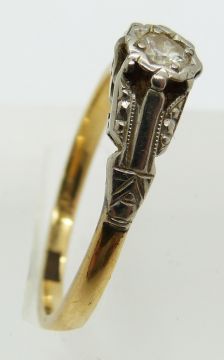 An 18ct gold ring set with a diamond in a platinum setting, 2.9g, size O/P