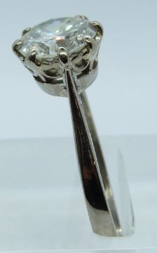 An 18ct white gold ring set with a round cut diamond of approximately 1.8ct, 3.5g, size Q/R