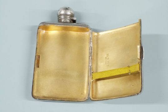 Edward VII George Unite hallmarked silver combined hallmarked silver hip flask and cigar case, with hinged side revealing cigar compartment and bayonet cap to flask, Birmingham 1901, length 16cm, weight 289g