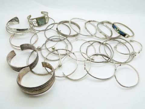 A collection of silver bangles