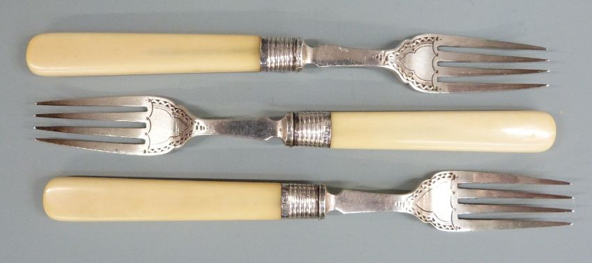 A quantity of Victorian hallmarked silver bladed and tined fish eaters, weight 304g all in