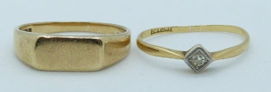 An 18ct gold ring (1.1g) set with a diamond and a 9ct gold ring (3.2g)