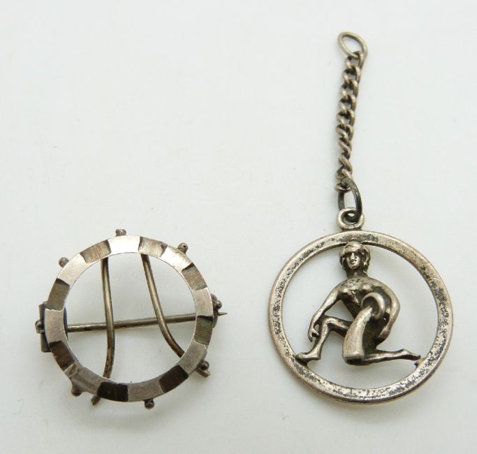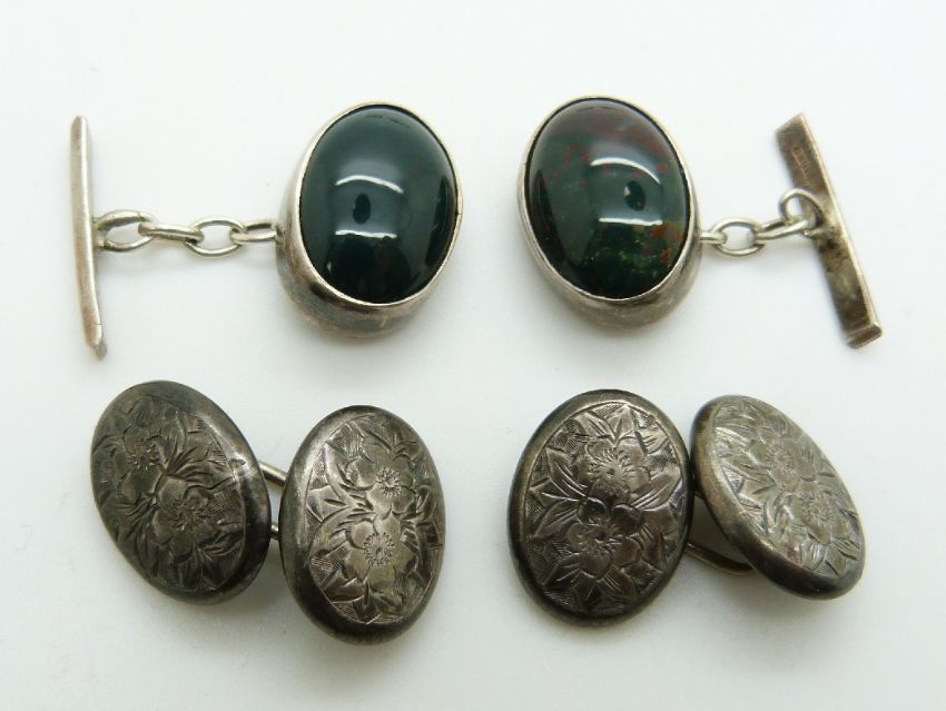 A white metal and amber brooch, a pair of silver cufflinks set with agate, a pair of Victorian cufflinks etc
