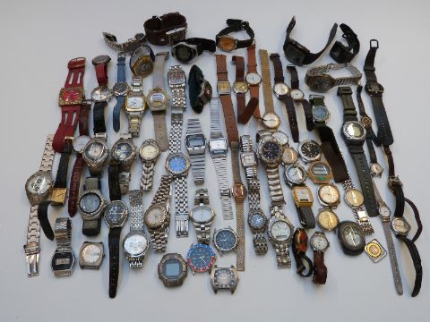 Over 50 various ladies and gentleman's wristwatches including Oris, Bass Calendar, Casio Data Bank, Sekonda moonphase, etc.