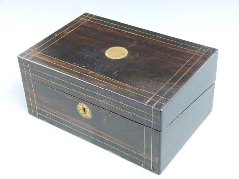 19thC coromandel wood and brass line inlaid writing slope with fitted interior, W36cm