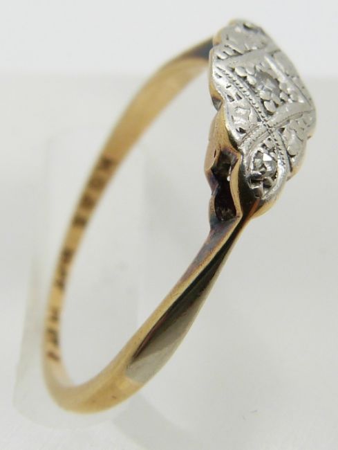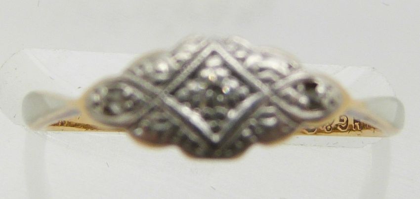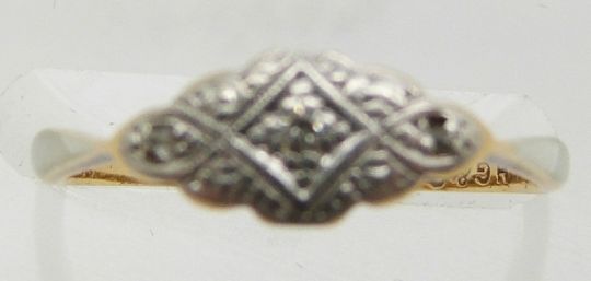 An 18ct gold ring set with diamonds in a platinum setting, 1.6g, size L