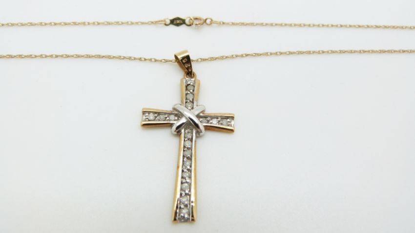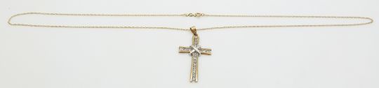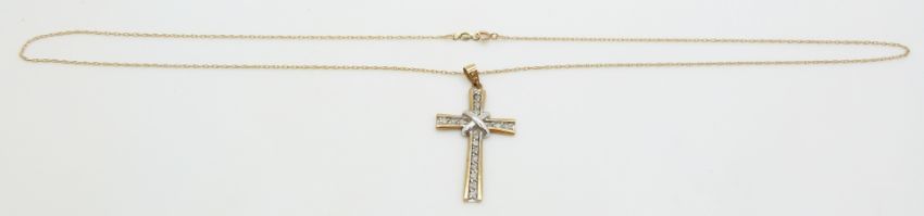 A 9ct gold cross pendant set with diamonds on 9ct gold chain, 2.9g