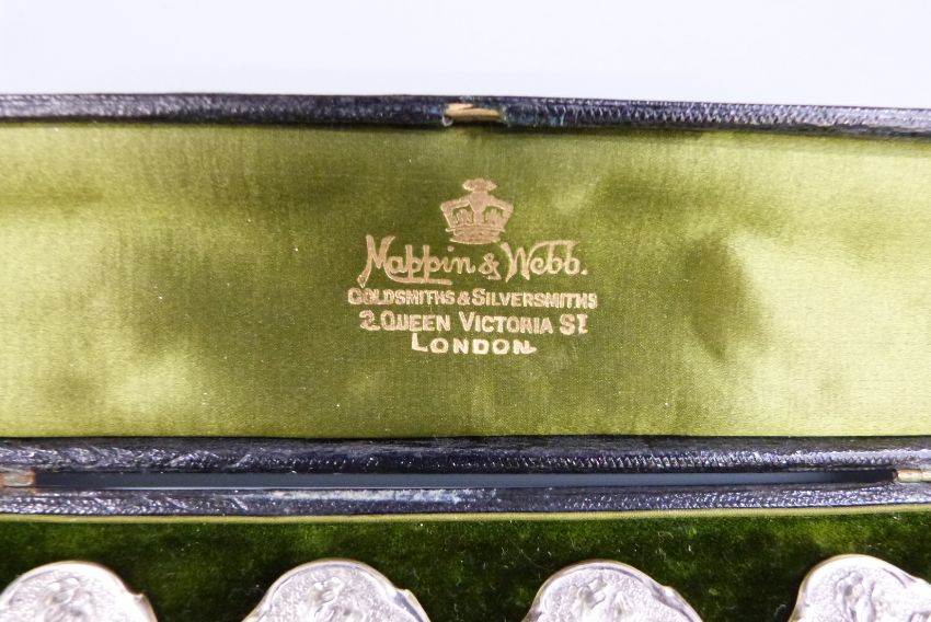 Mappin & Webb cased set of five hallmarked silver Art Nouveau buttons, Birmingham 1903 maker Henry Matthews, length of box 23cm