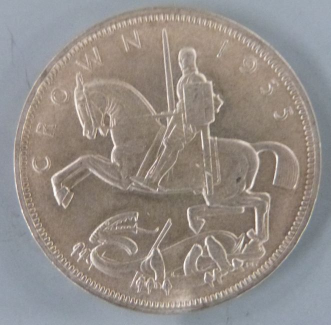 George V 1935 rocking horse crown together with approximately 442g of largely UK silver coinage