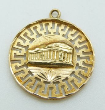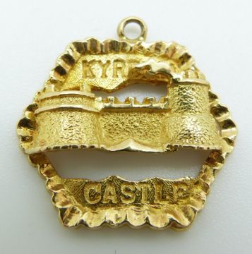 An 18ct gold pendant depicting Kyrenia Castle and two 18ct gold pendants, 8.2g