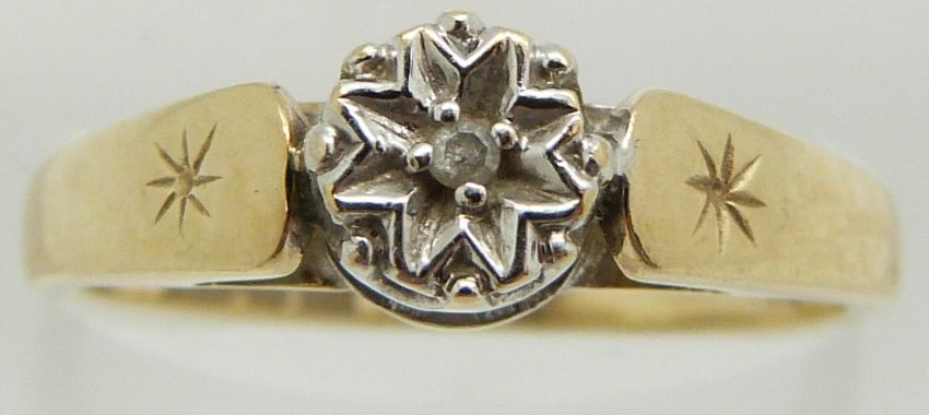 A 9ct gold ring set with a diamond in an illusion setting, 2.1g, size L/M