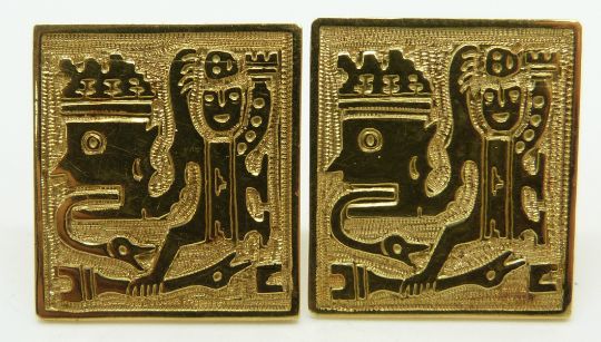 A pair of 18ct gold cufflinks with stylised figural decoration, impressed 750 verso, 12.8g