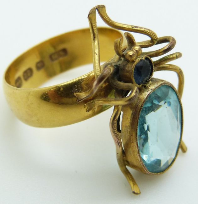 Victorian 22ct gold ring/band, Birmingham 1891 mounted with a spider, 7.2g, size L
