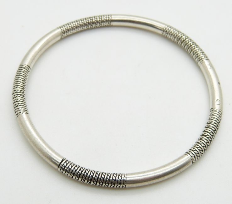 Georg Jensen silver bangle with textured sections, 6cm diameter