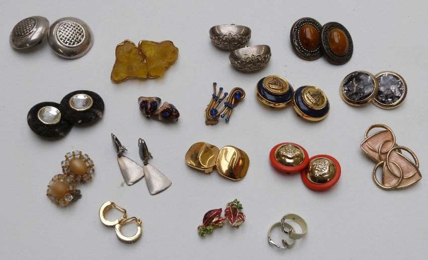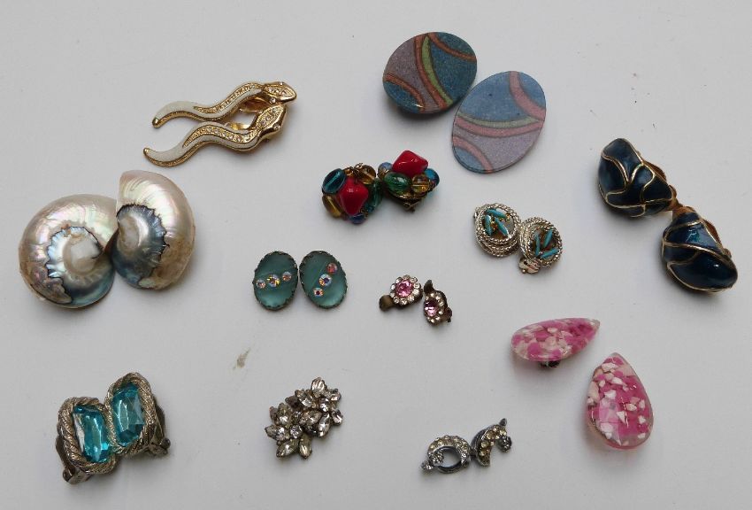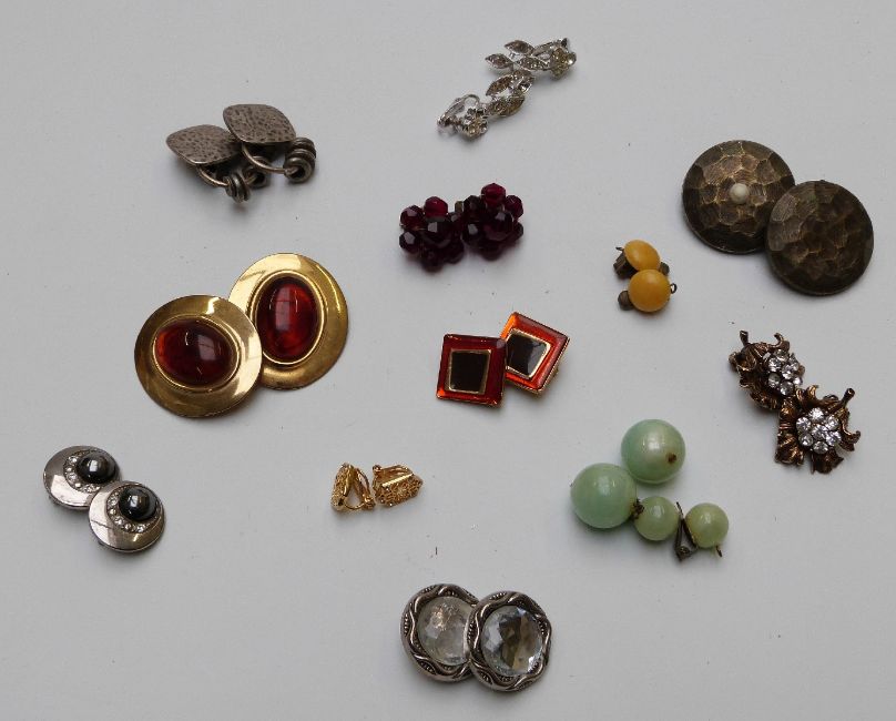 A large collection of earrings including Attitude Paris, enamel and glass examples
