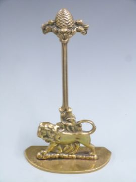 19thC brass door stop/porter with figural lion decoration and pineapple finial