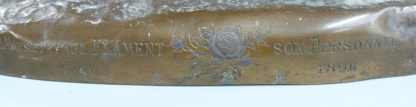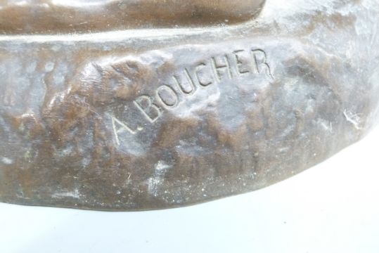 Alfred Boucher (1850-1934) bronze figure 'Le Terrassier' of a finely muscled barefoot man digging, with inscriptions to base 'A Monsieur Paul Flament Son Personnel 1846-1896' 'A Boucher' and 'F Barbedienne Fondeur' and 'A Collas' stamp to rear, H56cm