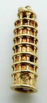 An 18ct gold pendant depicting the Leaning Tower of Pisa (4.9g) , and a yellow metal pendant depicting a bunch of bananas (2.3g)