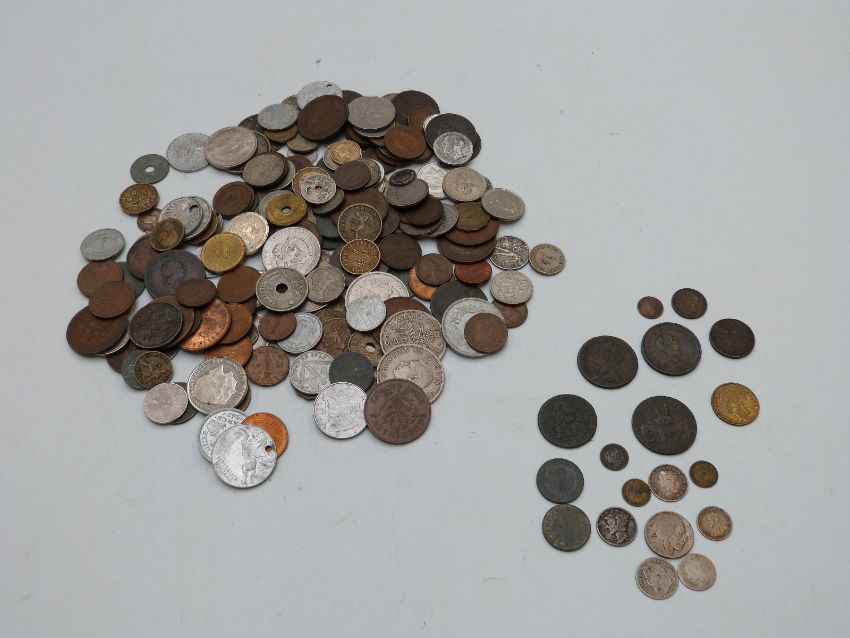 An amateur collection of world and UK coinage, George II onwards, includes miniature Victorian model coins, Coventry token, Nazi, small silver content