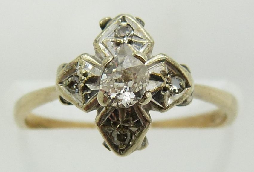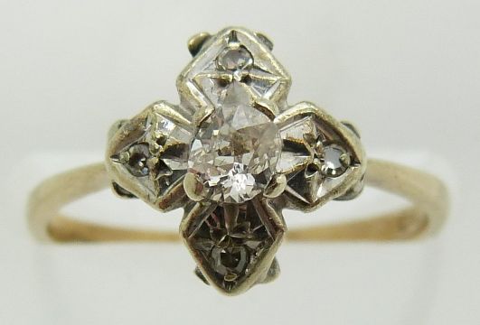 A 9ct gold ring set with diamonds, 1.7g, size K