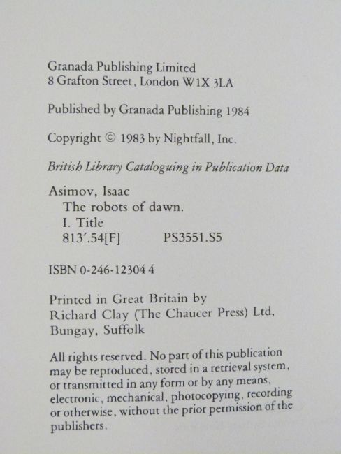 [Sci-Fi] Alan Dean Foster’s Alien published Macdonald General 1979 first edition hardback in dust-wrapper, Space a Novel by James A. Michener 1982, Arthur C. Clarke 2010 Odyssey Two 1982 and Isaac Asimov The Robots of Dawn 1983 – all in dust-wrappers  (4)