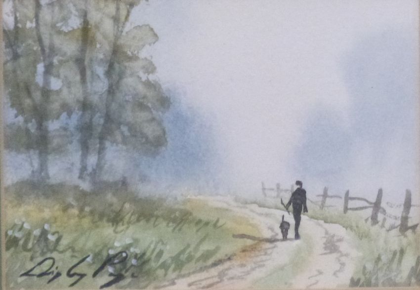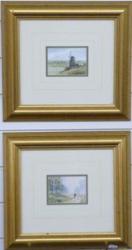 Digby Page, pair of watercolours of countryside scenes, both 7 x 10cm, gilt framed and glazed