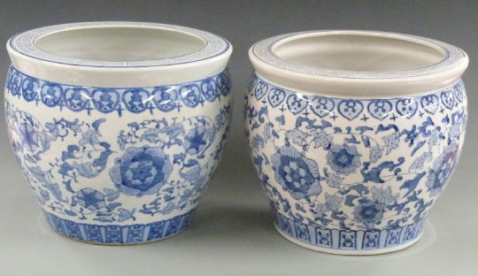Two Chinese blue and white jardinieres, 38cm in diameter