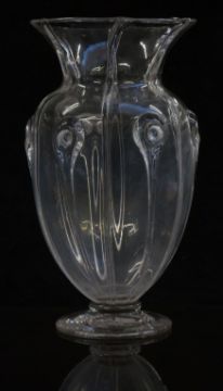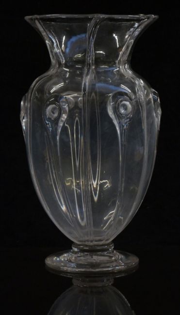 Stuart or Powell Art Nouveau style clear glass vase with applied decoration, 34cm tall