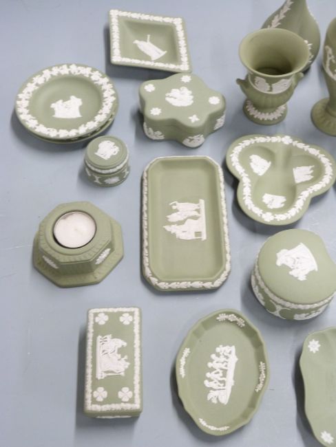 Twenty-two pieces of sage Wedgwood Jasperware