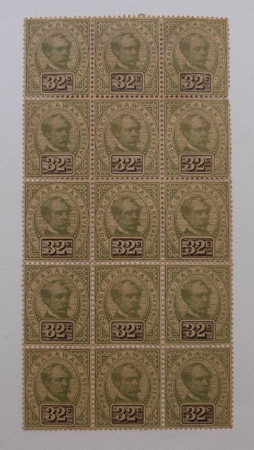 A mint block of 15 Sarawak 1888-97 32c stamps
