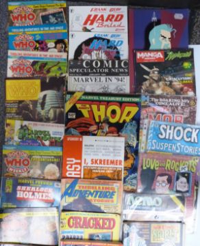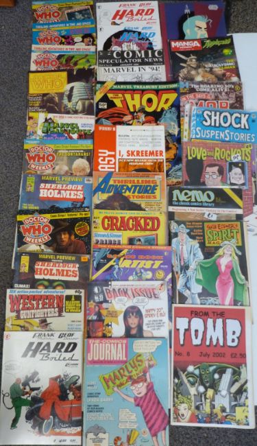 A large collection of comic books and magazines including Tick, Mad, Spider-Man, Private Eye, Roy Of The Rovers, Astrapi, Eerie, Incognito, Tomb, Crime Machine, Judge Dredd, Fury, Funday Times, Golden Fun etc.
