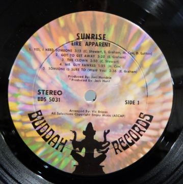 Eire Apparent - Sunrise (BDS 5031) record appears Ex, slight wear to cover with stamp hole