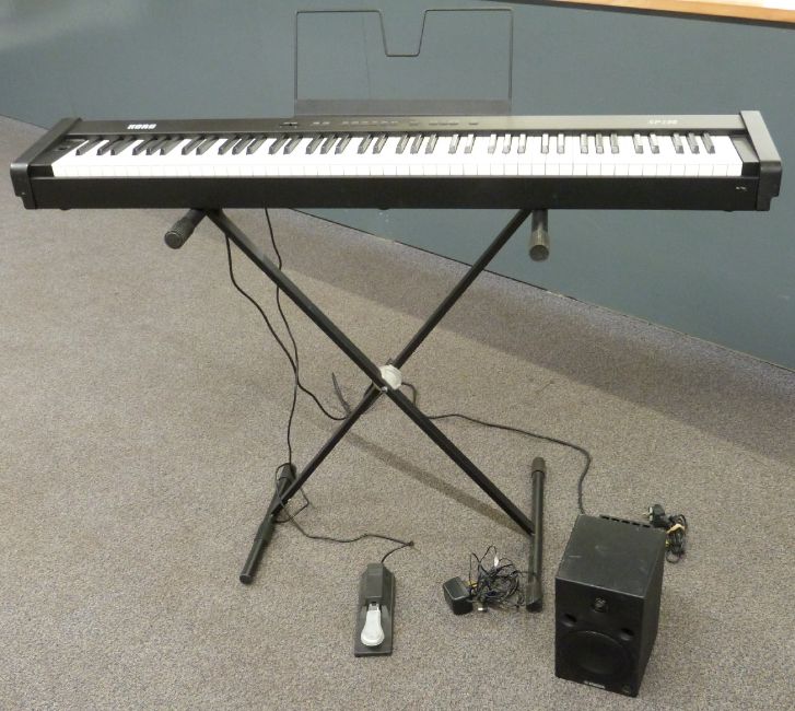 Korg SP-100 electric piano/keyboard complete with leads etc, with hard touring quality carry case and Yamaha model MSP5 monitor speaker