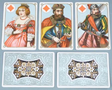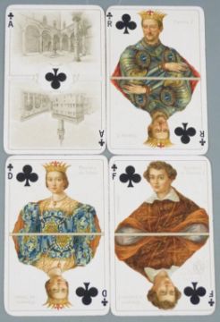 Two packs of Bernhard Dondorf playing cards comprising pack numbers 207 with allegorical scenes to the backgrounds and court cards with Middle Eastern figures and 272 with court cards depicting members of the Medici family, both in original slip cases